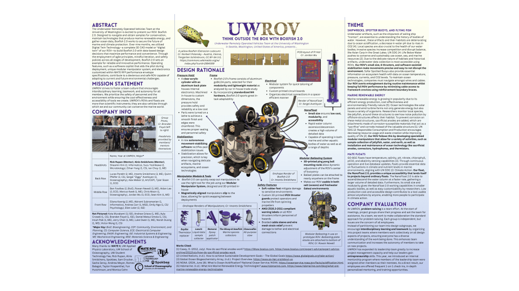 The Underwater Remotely Operated Vehicles Team (UWROV) at the University of Washington is an interdisciplinary club where students make underwater robots.